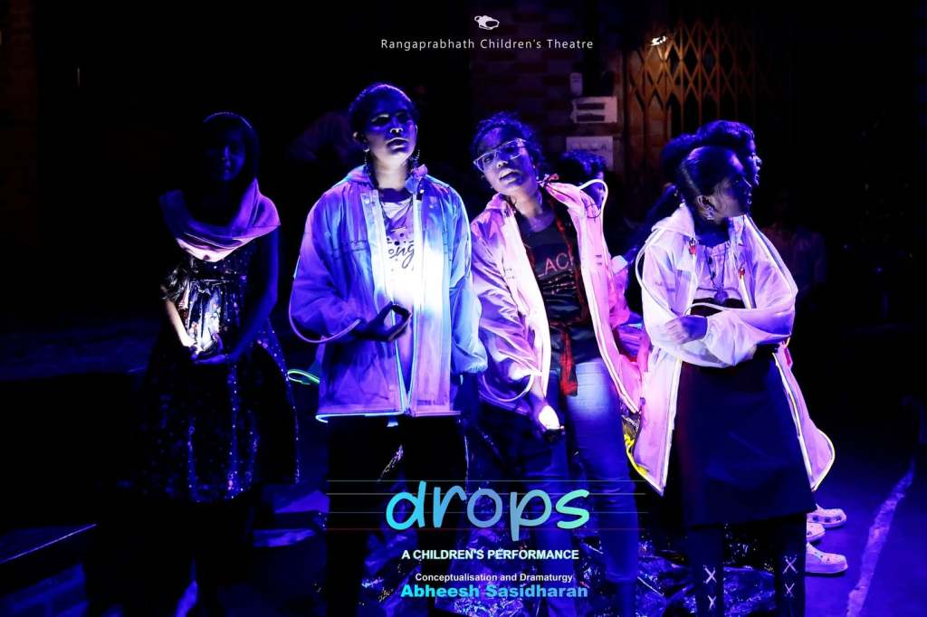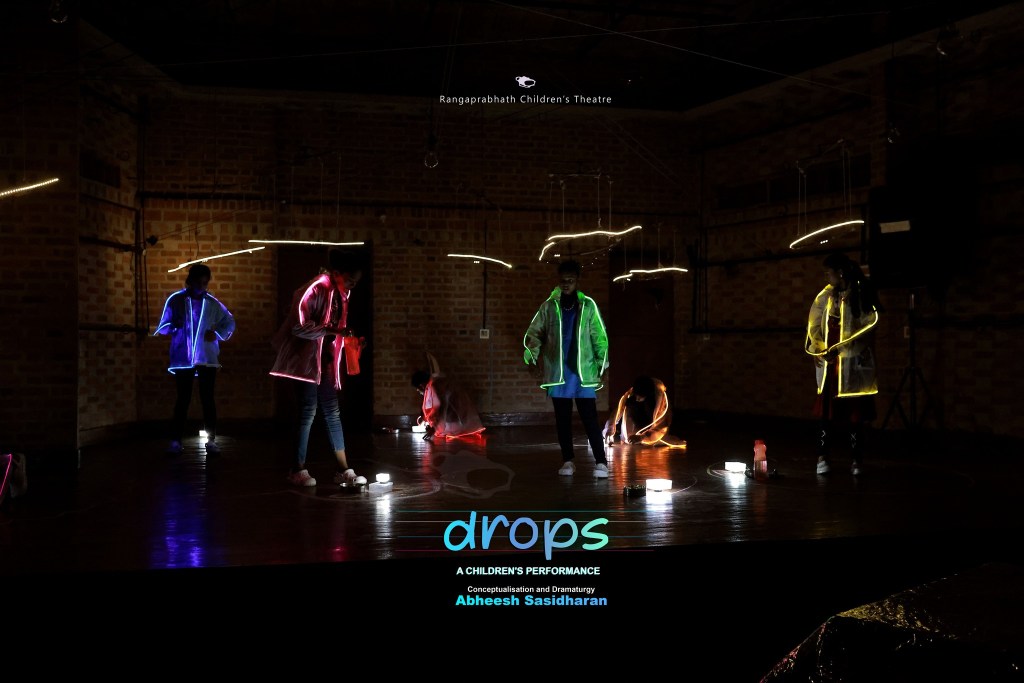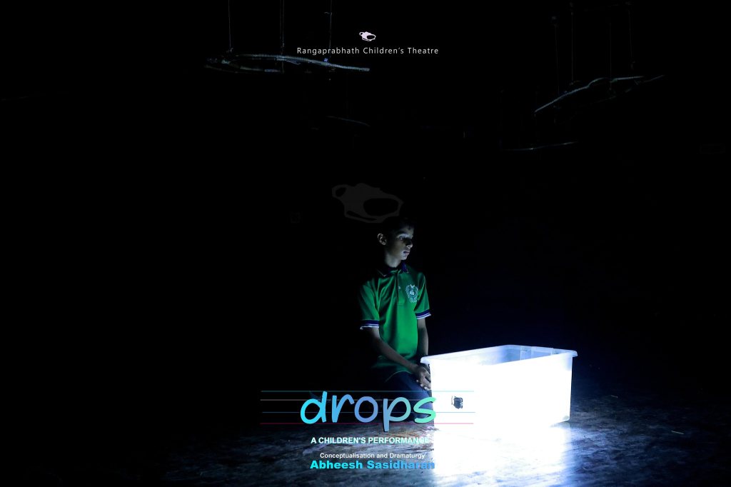 Facilitated by Dr. Abheesh Sasidharan in collaboration with Ranga Prabhath, a rural children’s theatre group in Trivandrum, Kerala. Working with seven children aged 12–15 over a month-long devising process, Drops. explores the dialogue between children’s imaginary worlds and their real selves.